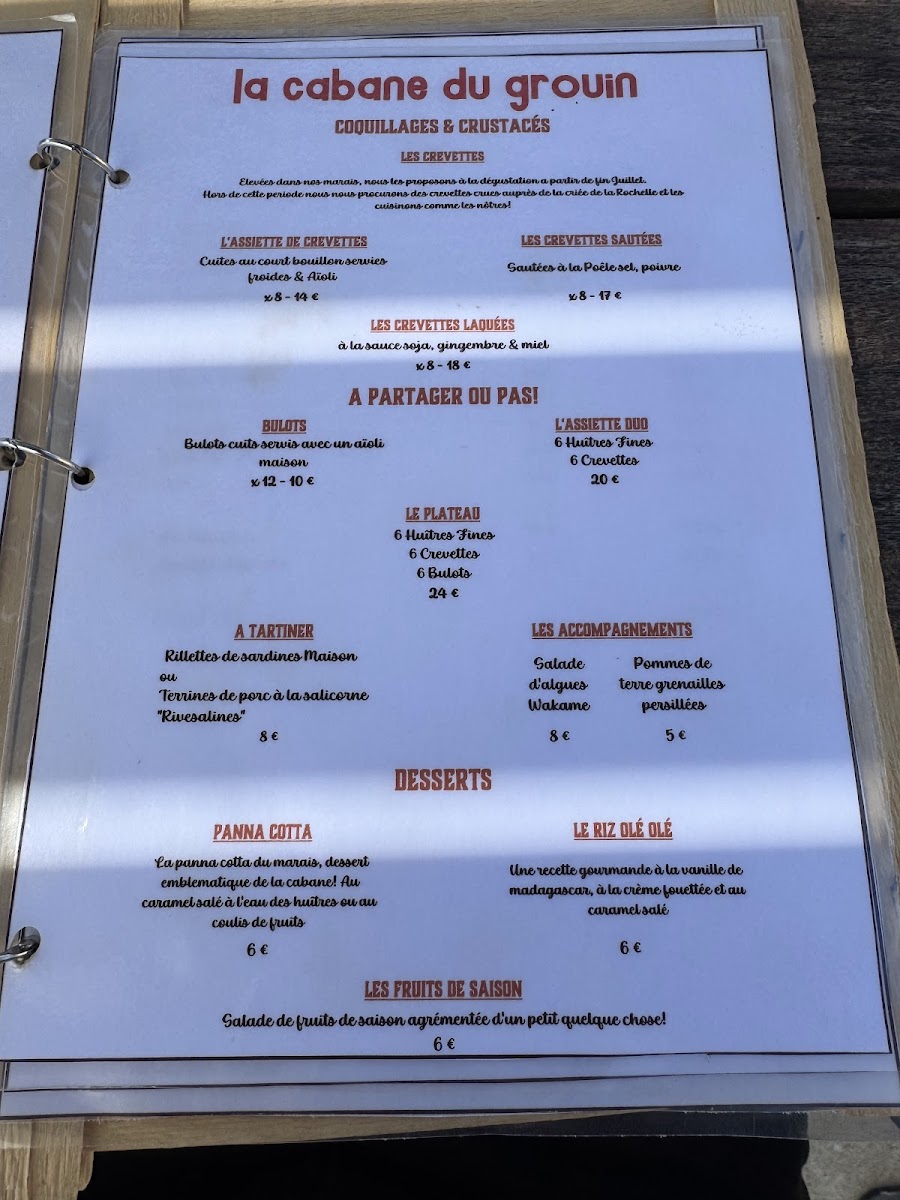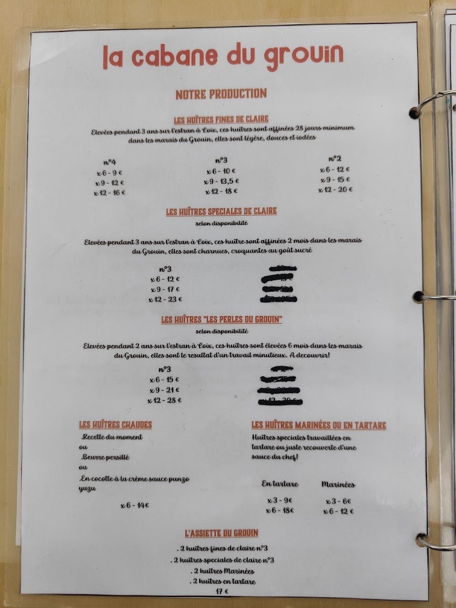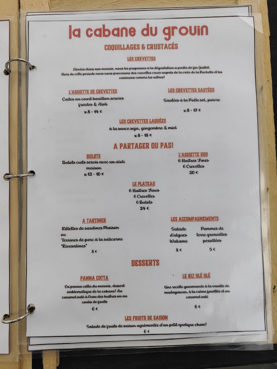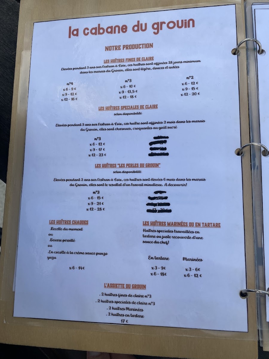 La Cabane Du Grouin offers a menu that is a celebration of the freshest seafood, perfectly reflecting its coastal location. The highlight is undoubtedly the 12 Huîtres Taille 2, a platter of plump, briny oysters that arrive with a simple accompaniment to let their natural flavor shine. Alongside these, the menu features a selection of other seafood delicacies, each thoughtfully prepared to emphasize freshness and quality. The dishes are straightforward yet elegant, focusing on the ingredients rather than overly complex preparations, which allows the natural flavors of the sea to take center stage. Whether enjoying a light appetizer or a heartier seafood main, the menu strikes a balance between indulgence and simplicity, offering diners an authentic taste of the region’s maritime bounty. With its careful attention to ingredient quality and seasonal offerings, La Cabane Du Grouin’s menu leaves a lasting impression, making it a must-visit for anyone seeking a genuine coastal dining experience.